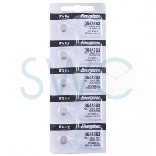 Interchange: Energizer 364, Renata 364, Varta V364, Rayovac 364, Duracell D 364, Timex T, Citizen 280-34, SB-AG/DG, I.E.C SR621 (SR60)