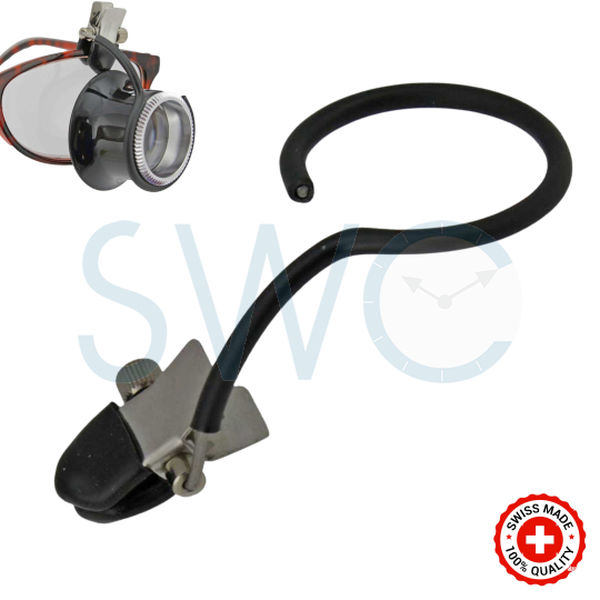 The BERGEON 7913-GS is a durable, steel “clip-on” clamp designed to secure a watchmaker’s loupe or eyeglass attachment to your existing eyeglass frame, offering a reliable, scratch-free wire frame with protective coating that won’t damage either the loupe or your glasses.