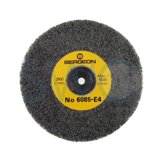 The Bergeon 6085 series is the perfect tool for finishing and polishing metals, especially watch case metals. Use to achieve either a brilliant or a matte polished finish. This particular finishing wheel is ideal for re-touching watch cases after a repair. Besides polishing watch cases and watch bands this wheel works well for cleaning, stripping, de-oxidation and retouching of metals like gold, silver and steel. No polishing compound or paste is required. Comes in four different grits: medium, fine, very fine, and ultra fine. Simply select the grit you need from the drop down menu above. These are Bergeon polishing / buffing wheels and are premium, high quality wheels. They last a long time and provide professional results. Wheel has a 4" Inch diameter, 0.75" thickness and 6mm (0.24") mounting hole.