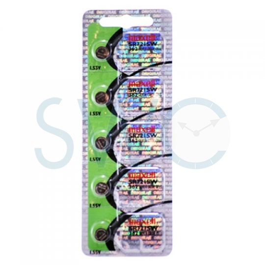 Silver oxide low drain battery 1.55 V. This Maxell battery measures 7.9 x 2.1mm. SR721SW mercury free and has a capacity of 23 mAh. Must purchase in increments of 5.