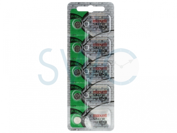 Silver oxide high drain battery 1.55 V. Watch Battery 392 measures 7.9X3.6mm. Maxell SR41W is mercury free and has a capacity of 45 mAh. Purchase in increments of 5.