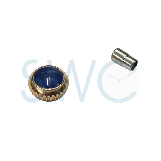 This Generic but high-quality elegant rose-goldcolour crown is designed as an aftermarket replacement for compatible Tissot ladies‑mechanical models such as ref. “T350047183 (T126.207)”. It features an outer diameter of 5.40 mm, a height of 1.80 mm, and a seating depth of 3.00 mm, with a thread/tap size of M0.90. The crown includes a decorative blue stone inset, adding a refined, luxurious touch in line with dress‑style ladies watches. It offers a high‑quality and visually accurate alternative when the original is worn, damaged or missing.. Once correctly fitted, this crown restores winding and time‑setting functionality while preserving the upscale look of the timepiece.