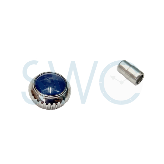 This Generic but high-quality elegant chrome‑coloured replacement crown is designed to fit the Tissot ladies mechanical watch reference T126.207 (case reference T350047174). It measures approximately 5.40 mm in diameter, 1.80 mm in height and seats to a depth of 3.00 mm. Thread size is M 0.90, aligning with the original specification of the watch. The crown features a decorative blue stone‑inset, adding a refined touch suitable for dress‑style ladies mechanical timepieces. Once correctly installed, this crown restores winding and time‑setting functionality, while maintaining the upscale aesthetic of the watch.