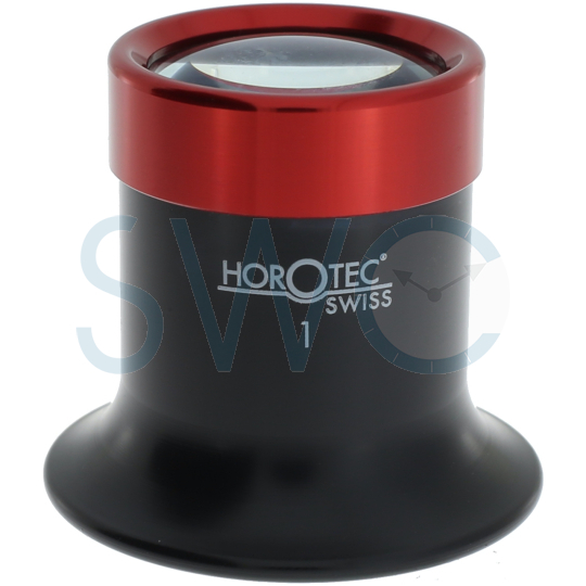 MSA00.032-1 EYEGLASS IN BLACK PLASTIC HOROTEC WITH SCREWED ALUMINIUM RING, No. 1 = 10.0x / LENS - 25 mm