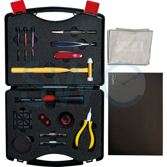 This tools kit, neatly presented in a sturdy plastic suitcase with dimensions of 265 x 220 x 80 mm, offers a practical solution for watchmaking tasks and various mechanical needs.
