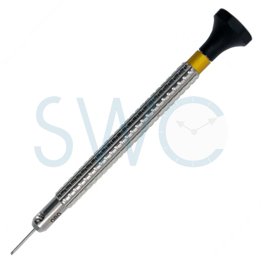 These Bergeon screwdrivers are incredibly well built. The robust, stainless steel body - slightly bigger (6mm in diameter) than standard size - with a special pattern etched into the handle for a superb feel and grip. Super strong blades are hardened stainless steel 54 HRC, perfectly finished and held firmly with a set screw. Can be used with the optional, removable 7965-T barrel drum for improved power and control. The drum was designed for the 7965 series and fits all the sizes. color-coded yellow for blade size 0.80 mm