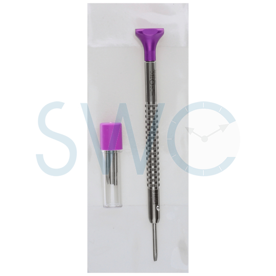 MSA01.219-160 WATCHMAKER SCREWDRIVER VIOLET HEAD, Ø 1.60 mm / TUBE WITH 3 BLADES / IN PLASTIC POUCH