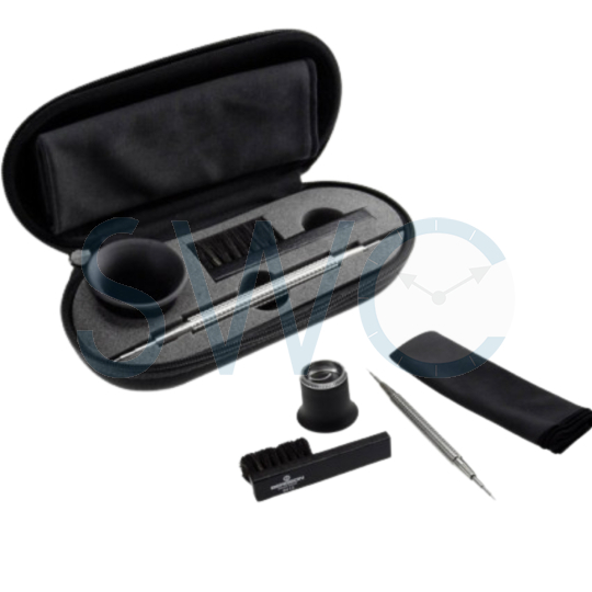 The sturdy outer case protects against impacts and bumps during travel, while individual interior compartments keep watches and components secure and scratch-free. Whether you’re transporting a single watch to a client, inspecting multiple pieces at an event, or simply need a reliable portable solution for basic maintenance, the 7821-TK2 delivers Swiss craftsmanship and workshop-grade quality in a travel-ready format.