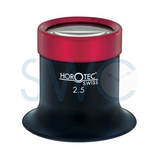 MSA 00.032-2.5 EYEGLASS IN BLACK PLASTIC HOROTEC WITH SCREWED ALUMINIUM RING, No. 2.5 = 4.0x / LENS Ø 25 mm