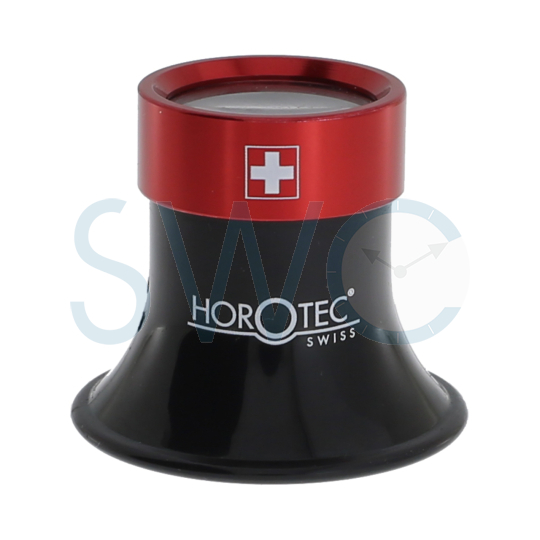 MSA 00.025-1 EYEGLASS IN BLACK PLASTIC HOROTEC WITH SCREWED RED ALUMINIUM RING, No. 1 = 10.5x / LENS Ø 22.5 mm