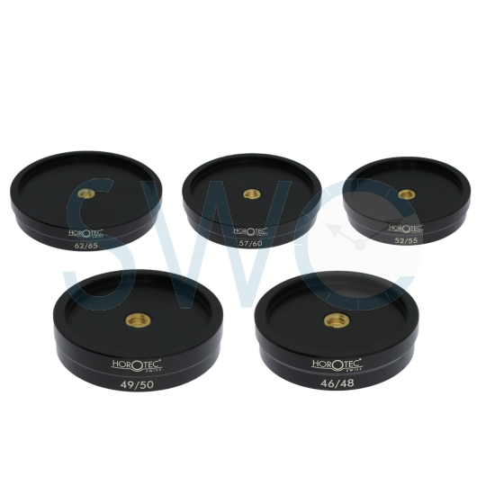 Designed for watchmakers, this assortment of 5 reversible screw-on dies made from Delrin® is perfect for closing watch cases with snap-on backs.