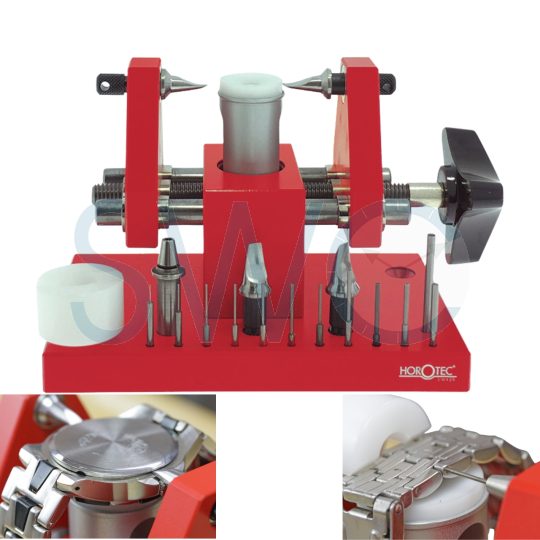 This tool was designed to remove Snap-on case backs with ease. It can also be used to remove some bezels and remove pins from bracelet links. It is made to allow precise snap-on adjusting and the holder is made of non-skid Delrin mounted on a spring for support that will not damage the watch case. It has a perfectly parallel carriage that is mounted on the two guides that allow you to open the case back. The guides come with two pairs of hardened steel blades in 2 mm and 4 mm. The handle is completely ergonomic to make your job more comfortable. Includes one pin holder, an assortment of 11 pins (.40, .60, .70, .80, .90, 1.00, 1.10, 1.20, 1.40, 1.50, and 2.00mm) and a precision sliding carriage for extracting glasses and case backs. Has a maximum opening of 60mm.