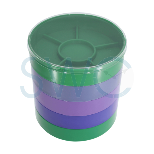 MSA17.580 STACKABLE ABS PLASTIC TRAY FOR SPARE PARTS WITH 6 COMPARTMENTS + 1 LID, ROUND SHAPE / INT. Ø 81 x HEIGHT 15 mm / SET 5 PIECES (5 COLOURS)